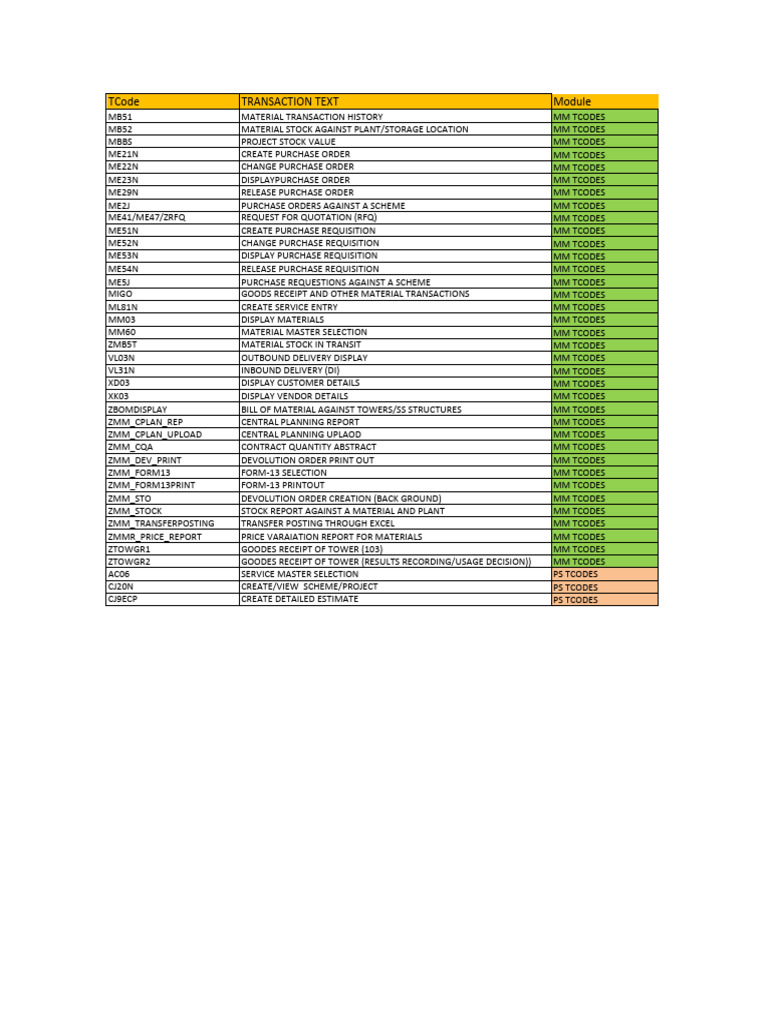 Download Module wise SAP TCODE LIST in Excel Sheet