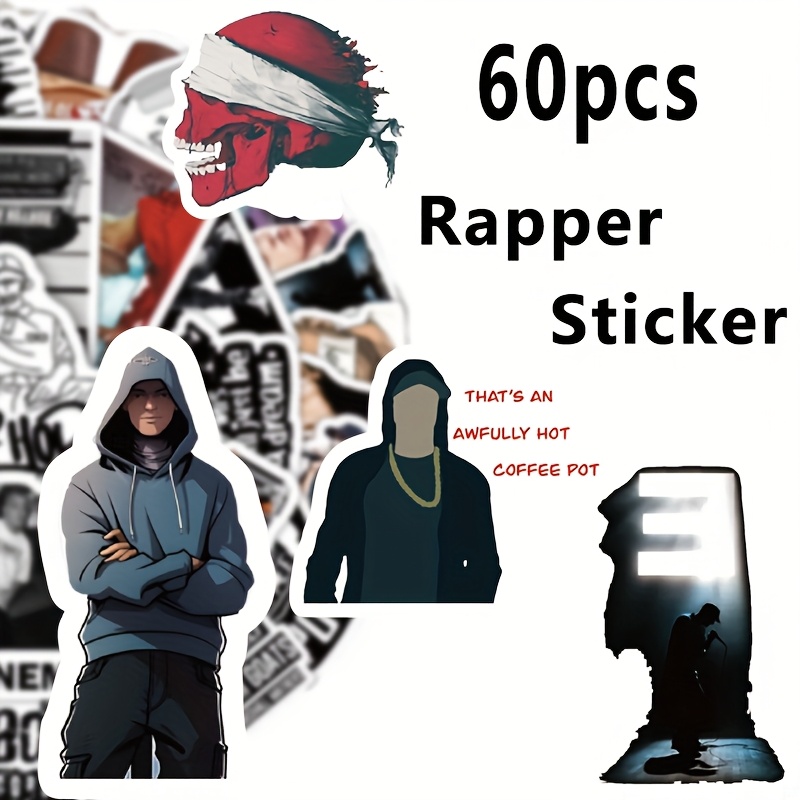 60pcs Rapper Stickers Mixed Hip Hop Artist Paper Sticker Pack for Fans ...