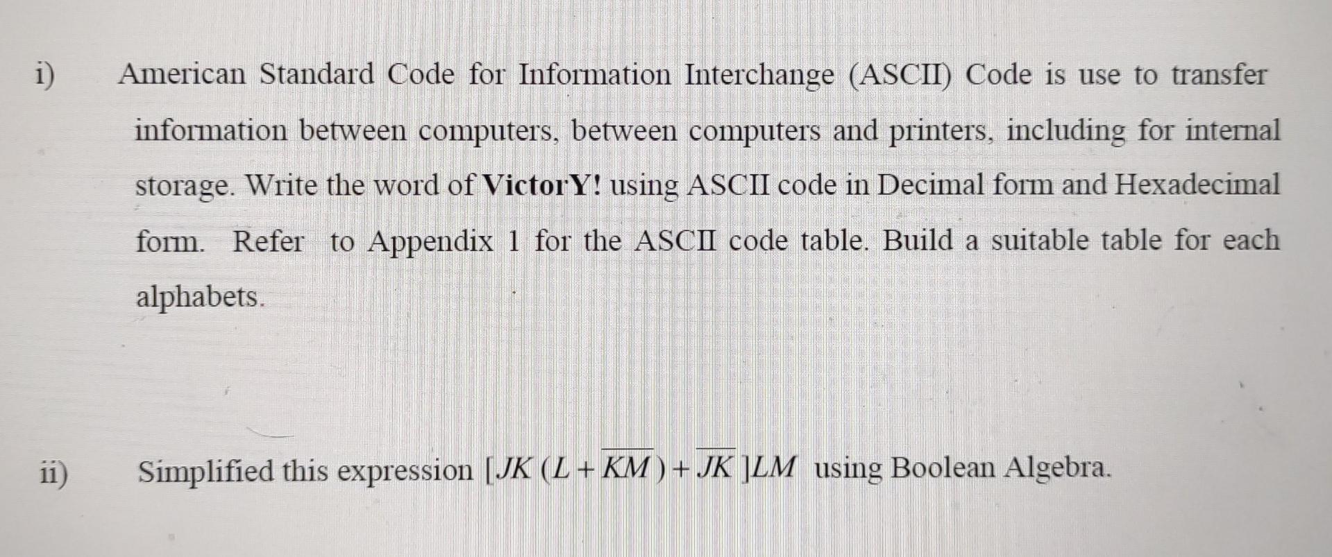 Solved i) 11) American Standard Code for Information | Chegg.com