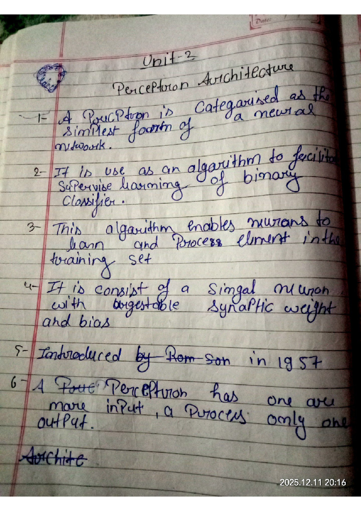 ASC UNIT 2 - Perceptron Architecture and Backpropagation Notes - Studocu