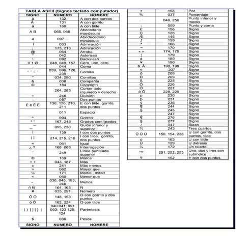 Tabla caracteres ascii | PDF
