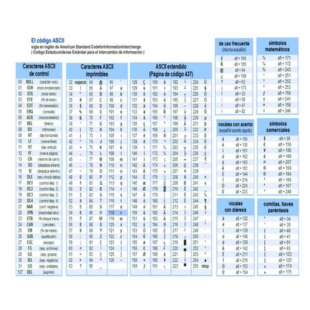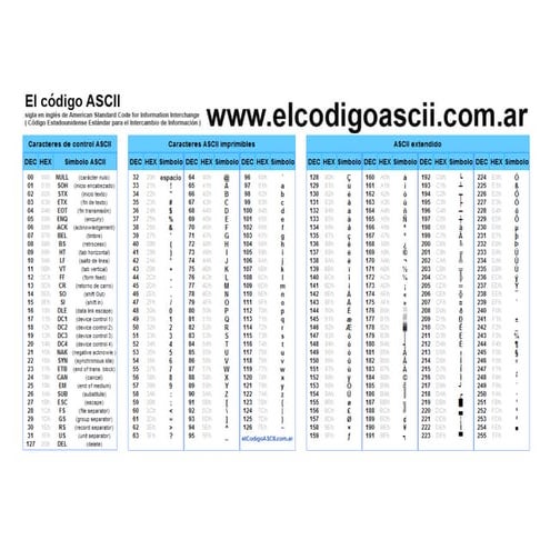 Tabla de códigos ascii | PDF