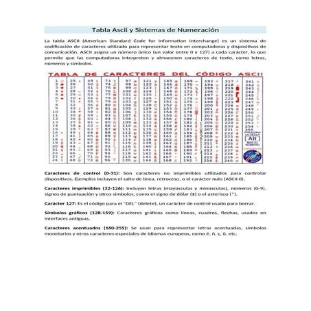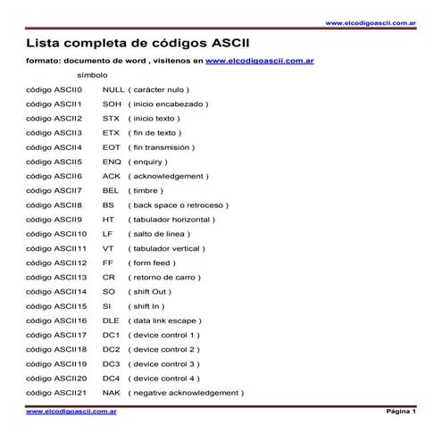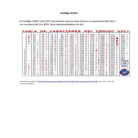 Tabla de códigos ascii | DOCX