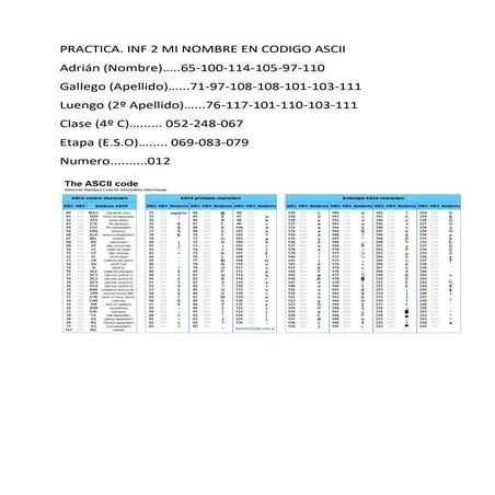 Mi nombre en codigo ascii | PDF