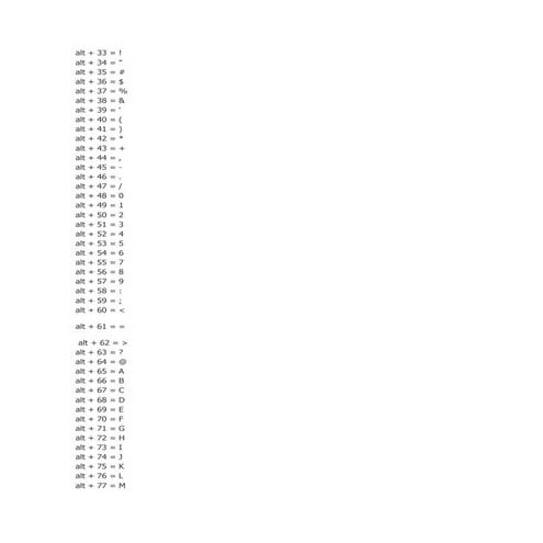 Ascii Special Characters Alt Codes For