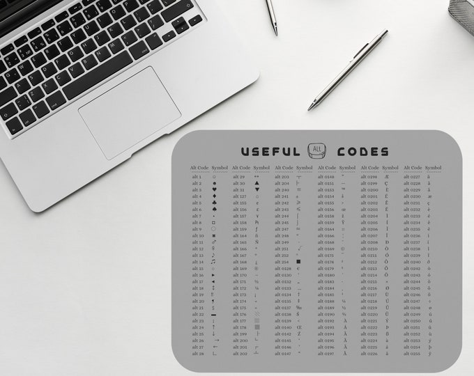 Mauspad mit ASCII Code Tabelle I Tastenkombinationen I 24 x 19 cm I ...