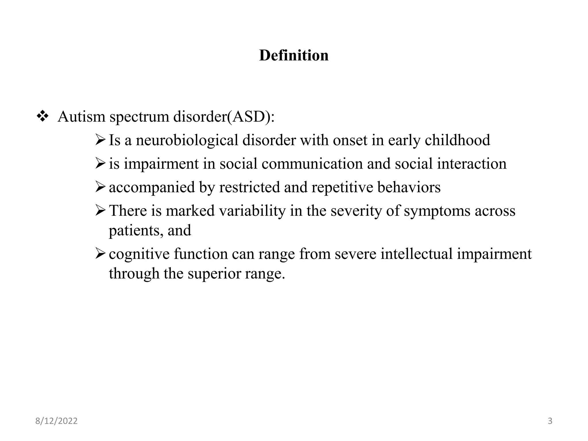 AUTISM SPECTRUM DISORDER: DEFINITION, ETIOLOGY, PATHOPHYSIOLOGY ...