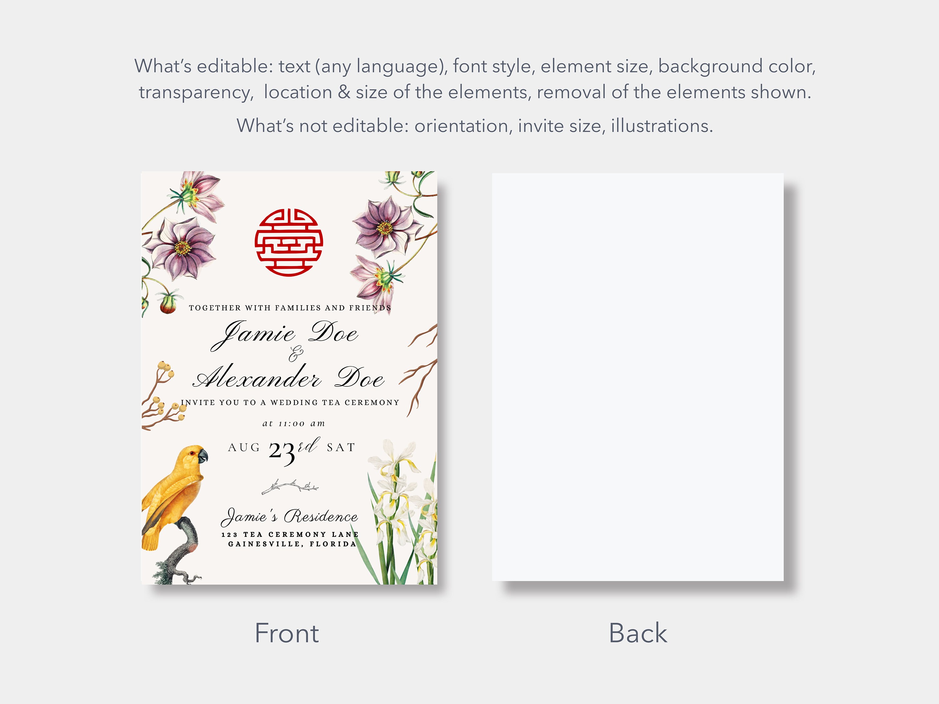 Asian Theme Invitation Editable Template Wedding Tea - Etsy