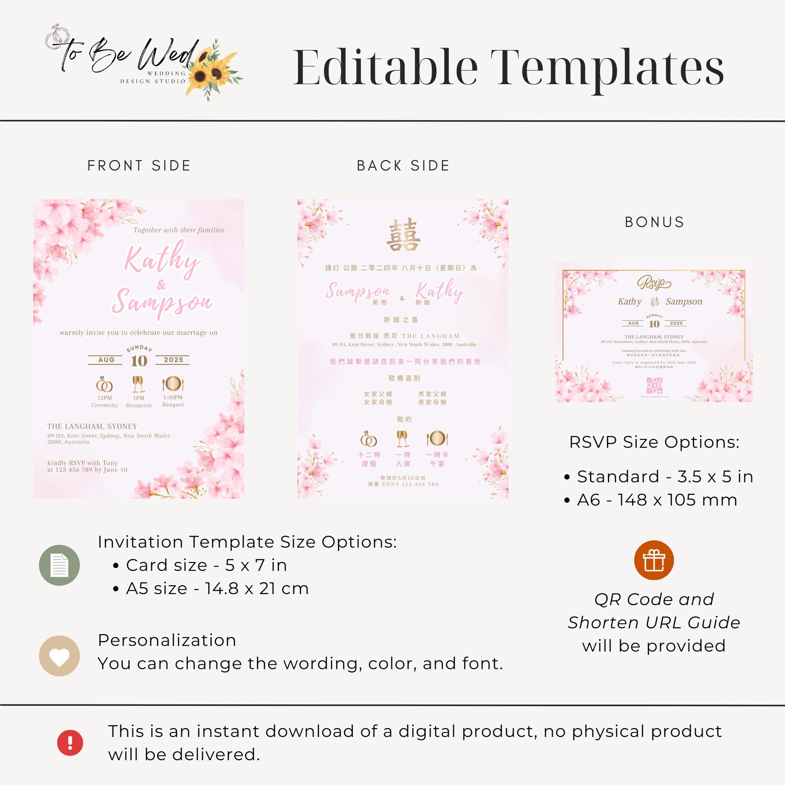 Editable Asian Wedding Invitation, Bilingual Oriental Wedding Templates ...