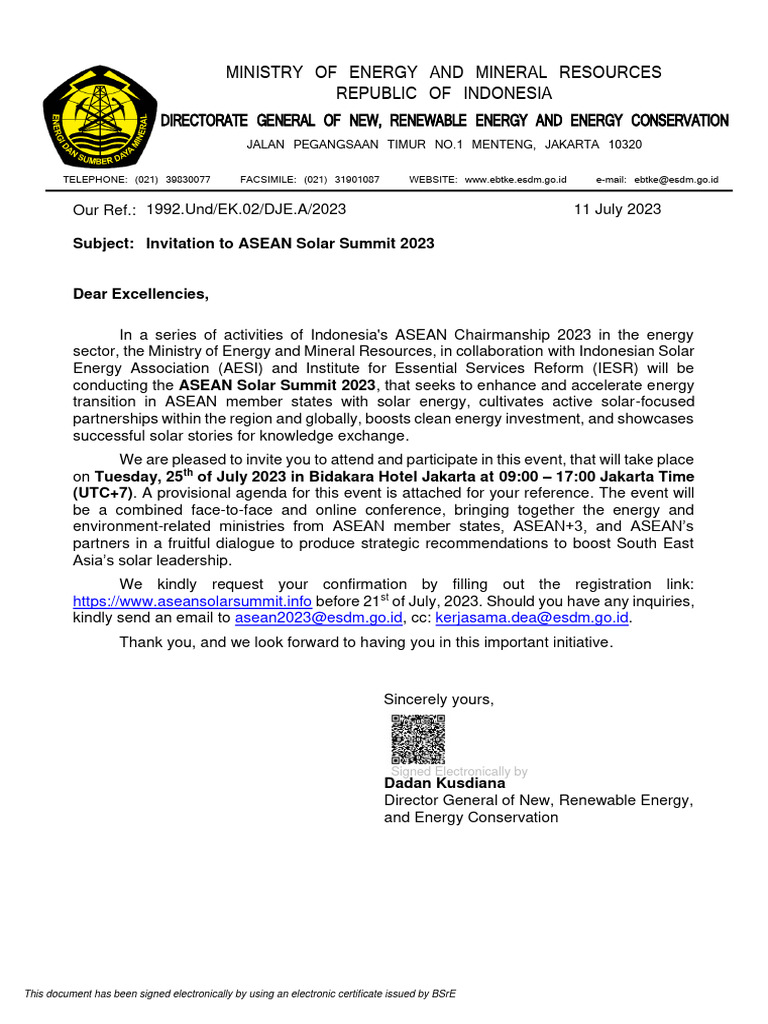 Invitation ASEAN Solar Summit (ASS) 2023 | PDF