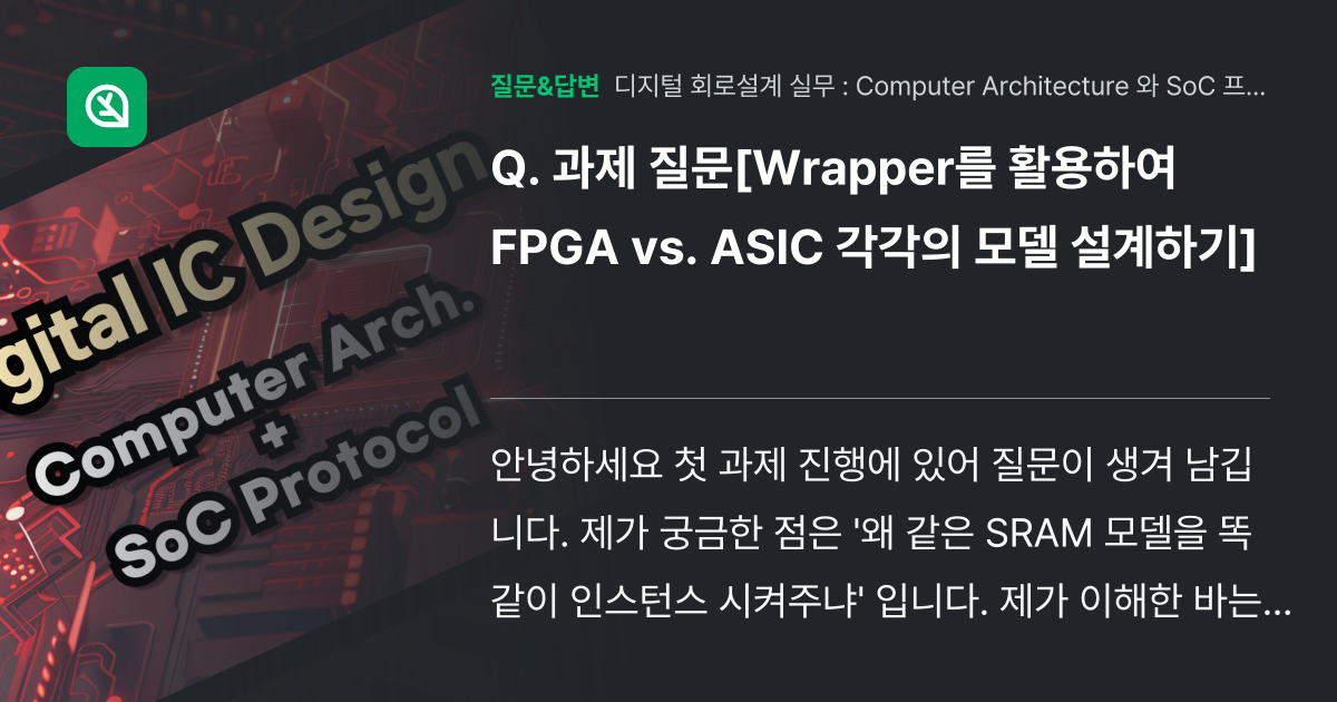 과제 질문[Wrapper를 활용하여 FPGA vs. ASIC 각각... - 인프런 | 커뮤니티 질문&답변