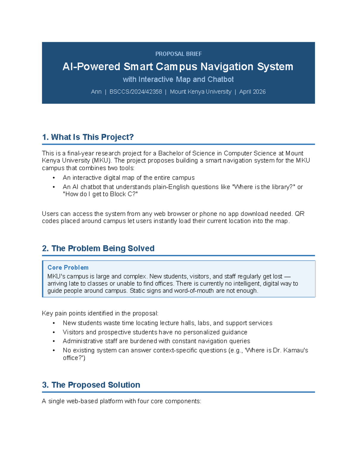 NAV Proposal Summary: Smart Campus Navigation System for MKU - Studocu