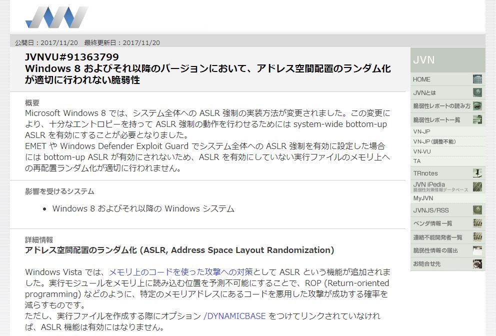 JVN、EMETやWindows Defender Exploit GuardのASLR強制による脆弱性緩和策が不十分だと公表 ほか ...