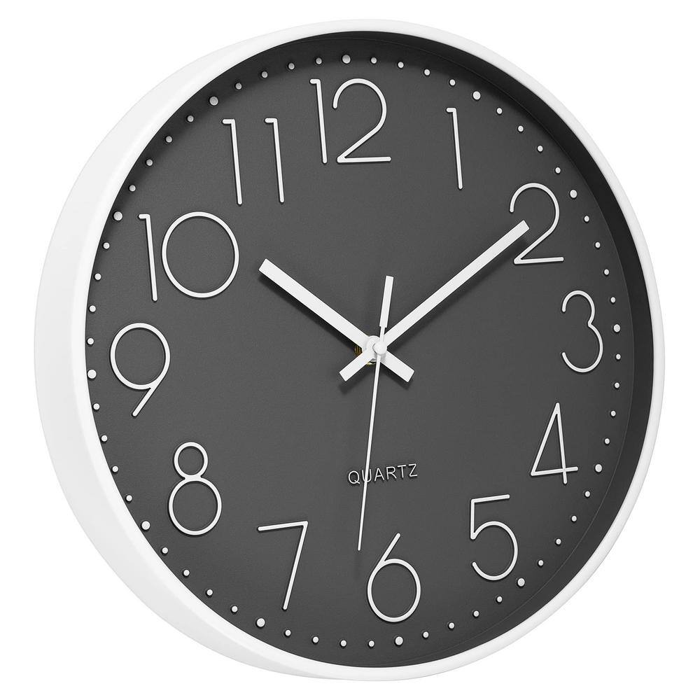 Afoxsos 12 in. Gray and Black Analog Plastic Battery Operated Silent ...