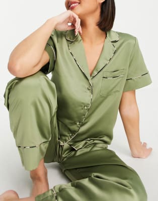 ASOS DESIGN mix & match satin pyjamas in olive | ASOS