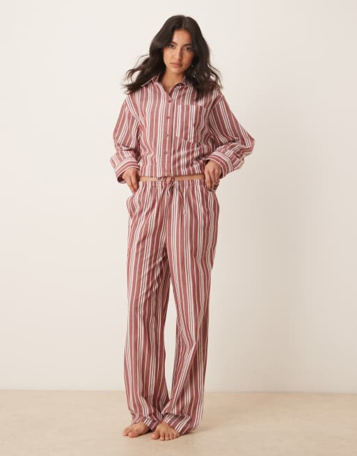 ASOS DESIGN woven pyjamas in red & white stripe | ASOS