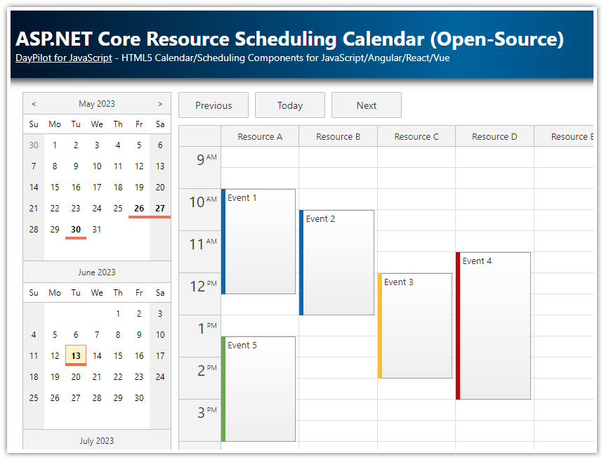 ASP.NET Core Resource-Scheduling Calendar (Open-Source) | DayPilot Code