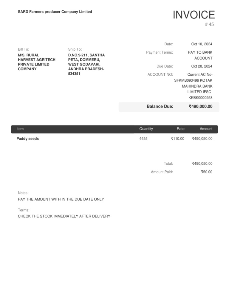 SARD Invoice 45 | PDF