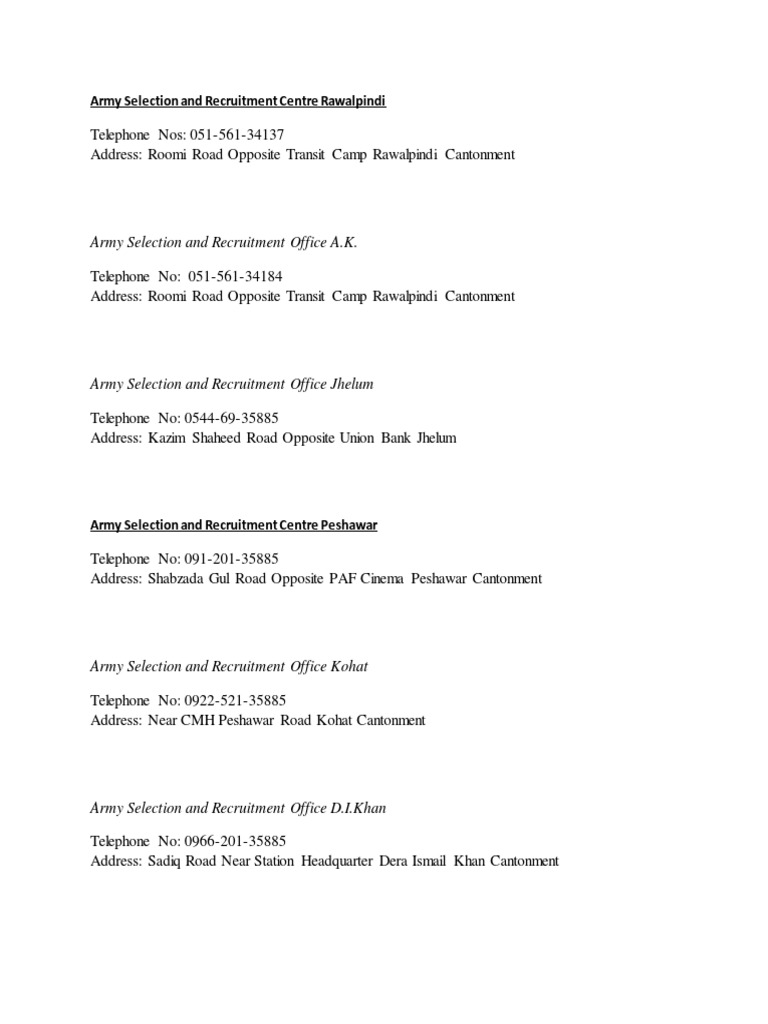 Army Recruitment Centers in Rawalpindi | PDF