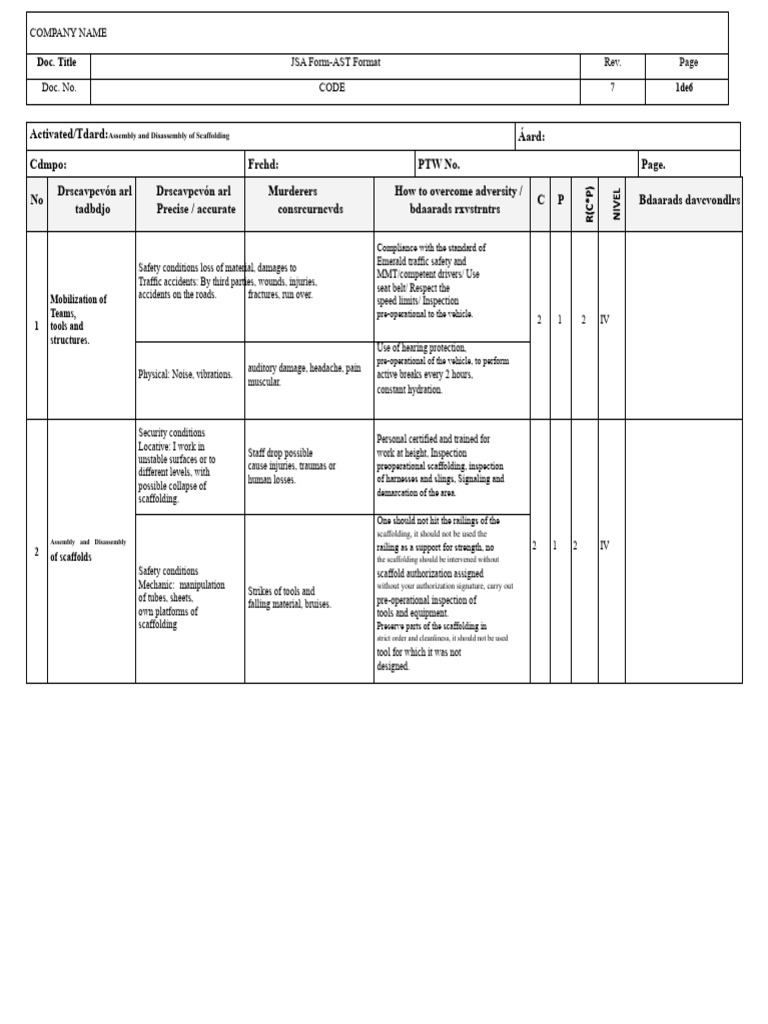 AST Format For Scaffold Assembly Activities | PDF | Safety ...