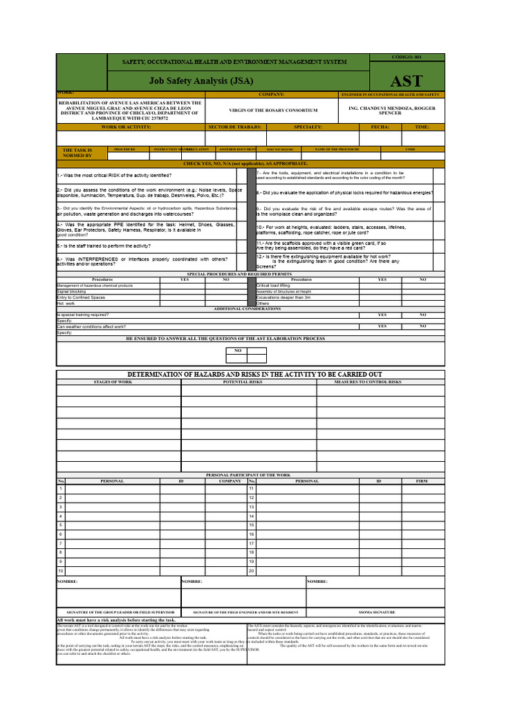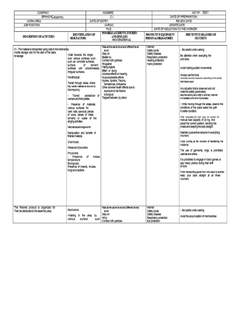 Ast - format - N° ACTIVIDAD DE TRABAJO PELIGRO RIESGO NIVEL DERIESGO ...