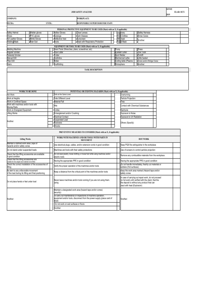 AST Workplace Safety Analysis Format | PDF | Occupational Safety And ...