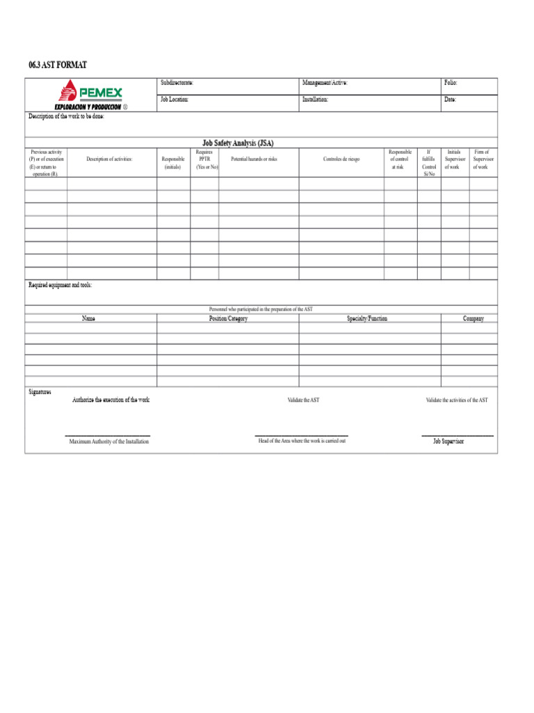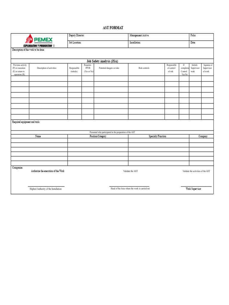 Pemex Ast Format | PDF | Personal Protective Equipment | Safety