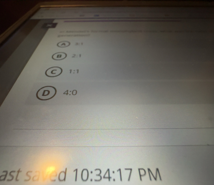 Solved: ? A 3:1 B 2:1 C 1:1 D 4:0 ast saved 10:34:17 PM | [Others]