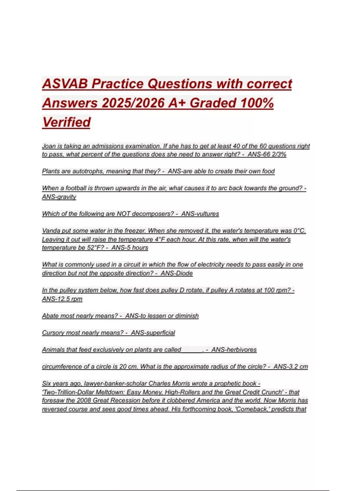 ASVAB EXAM QUESTIONS WITH CORRECT ANSWERS 2025/2026 A+ GRADED 100% ...