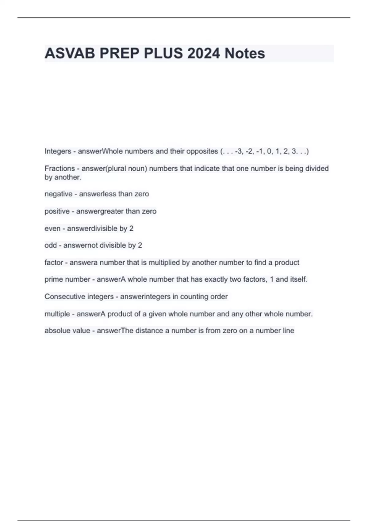 ASVAB PREP PLUS 2024 Notes questions with answers - ASVAB - Stuvia US