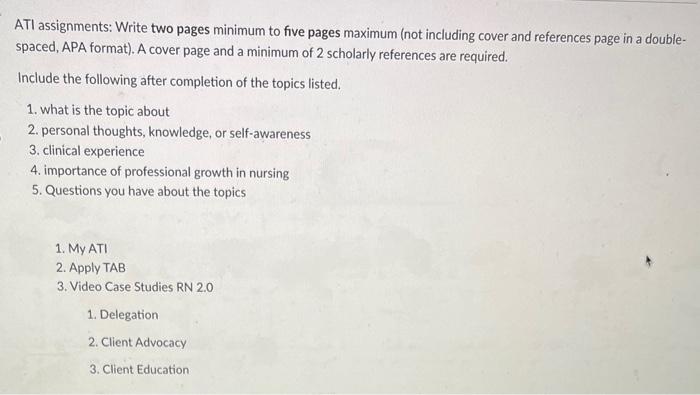 ATI assignments: Write two pages minimum to five | Chegg.com