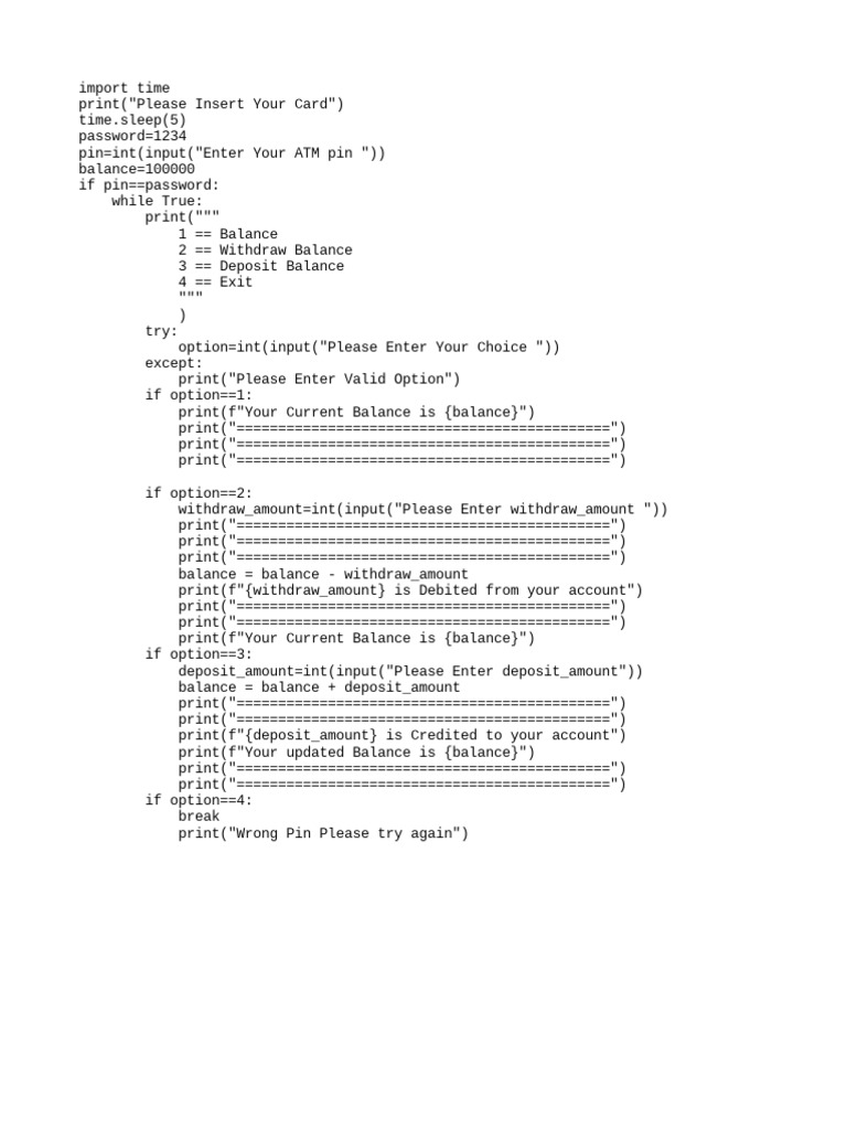 Solved Create a Bank ATM program in Python that will work as | Chegg.com