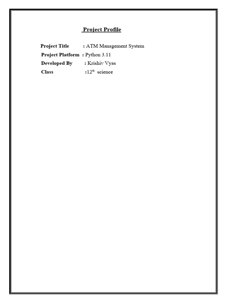 ATM Machine Code Development Using Python - Project Overview - Studocu