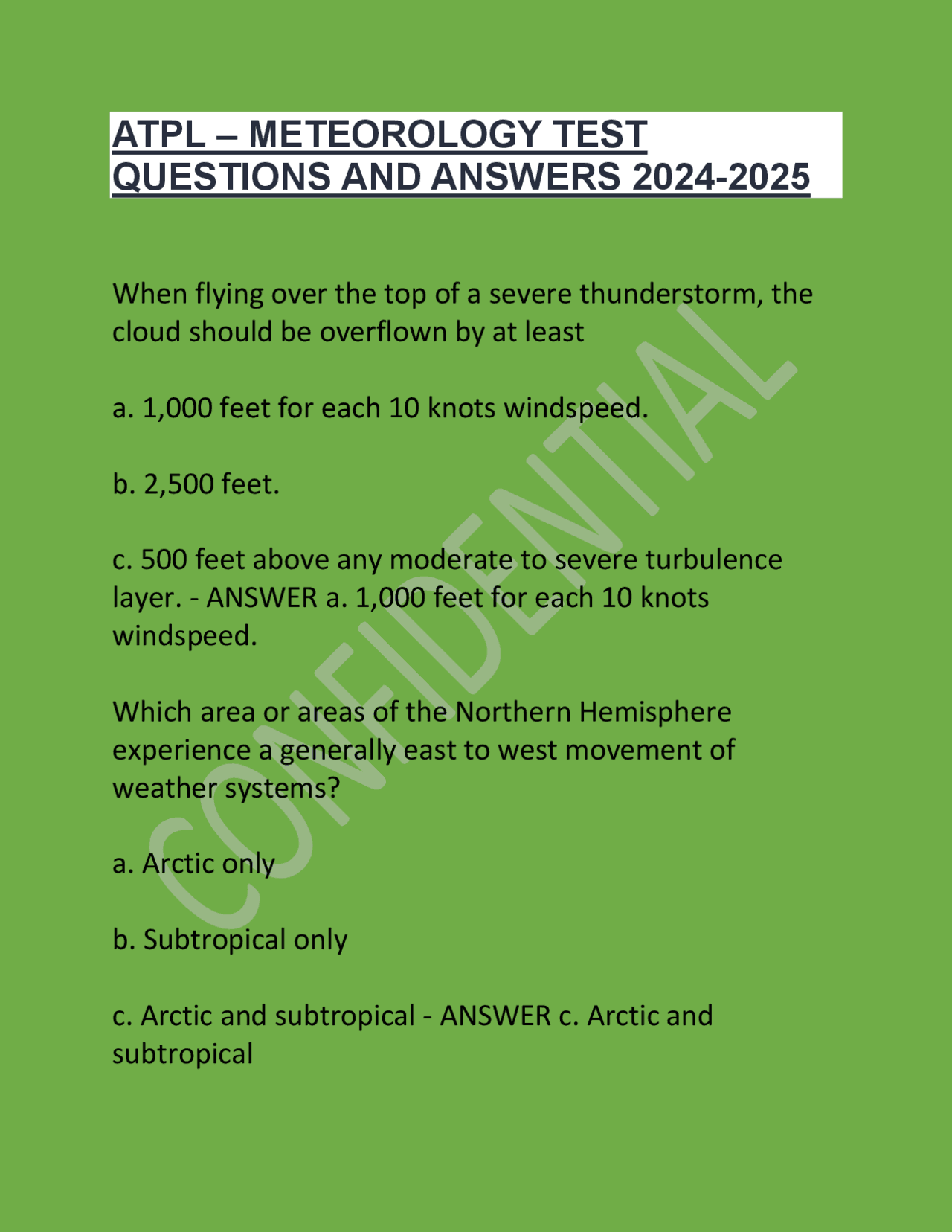 Meteorology ATPL Exam Questions And Answers |Latest 2025 | Guaranteed ...