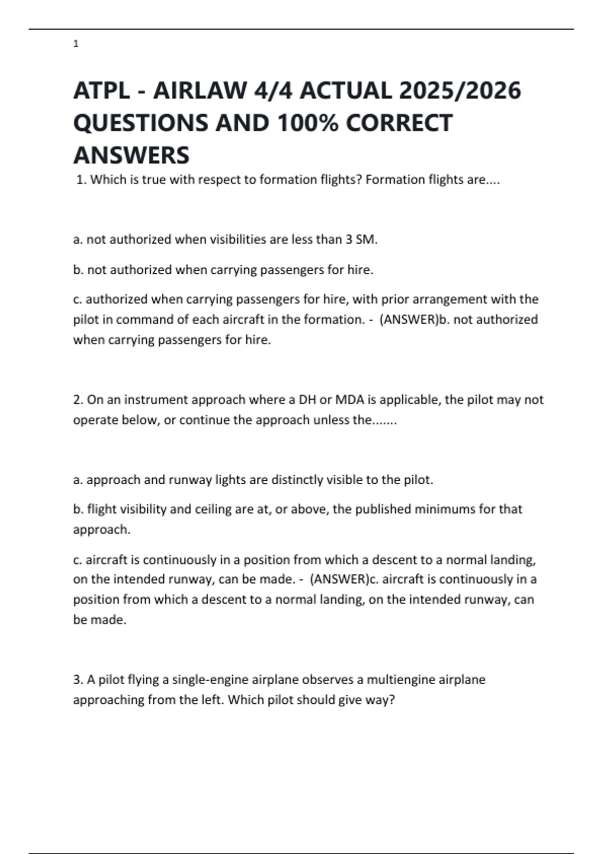 ATPL Test Questions with Correct Answers Graded A+ Latest Update - Atpl ...