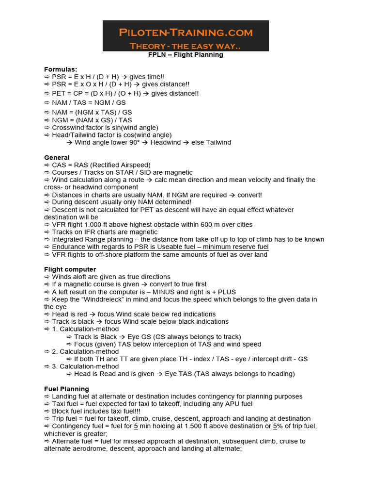 ATPL Formulas Summary for Theory and Practical Applications - Studocu