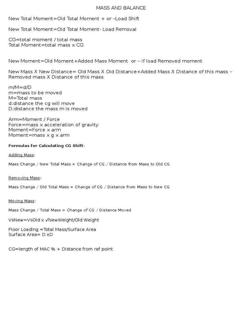 ATPL Mass and Balance Formulas | PDF | Mass | Mechanics