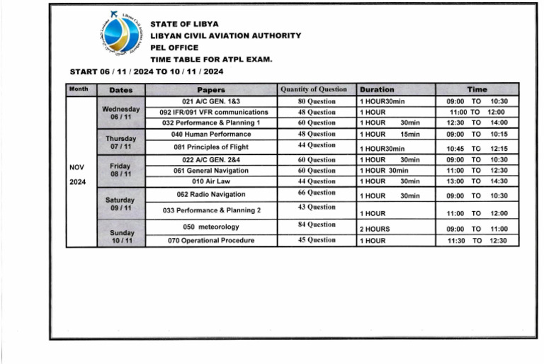 ATPL E 07 Retake Exam TIME TABLE | PDF