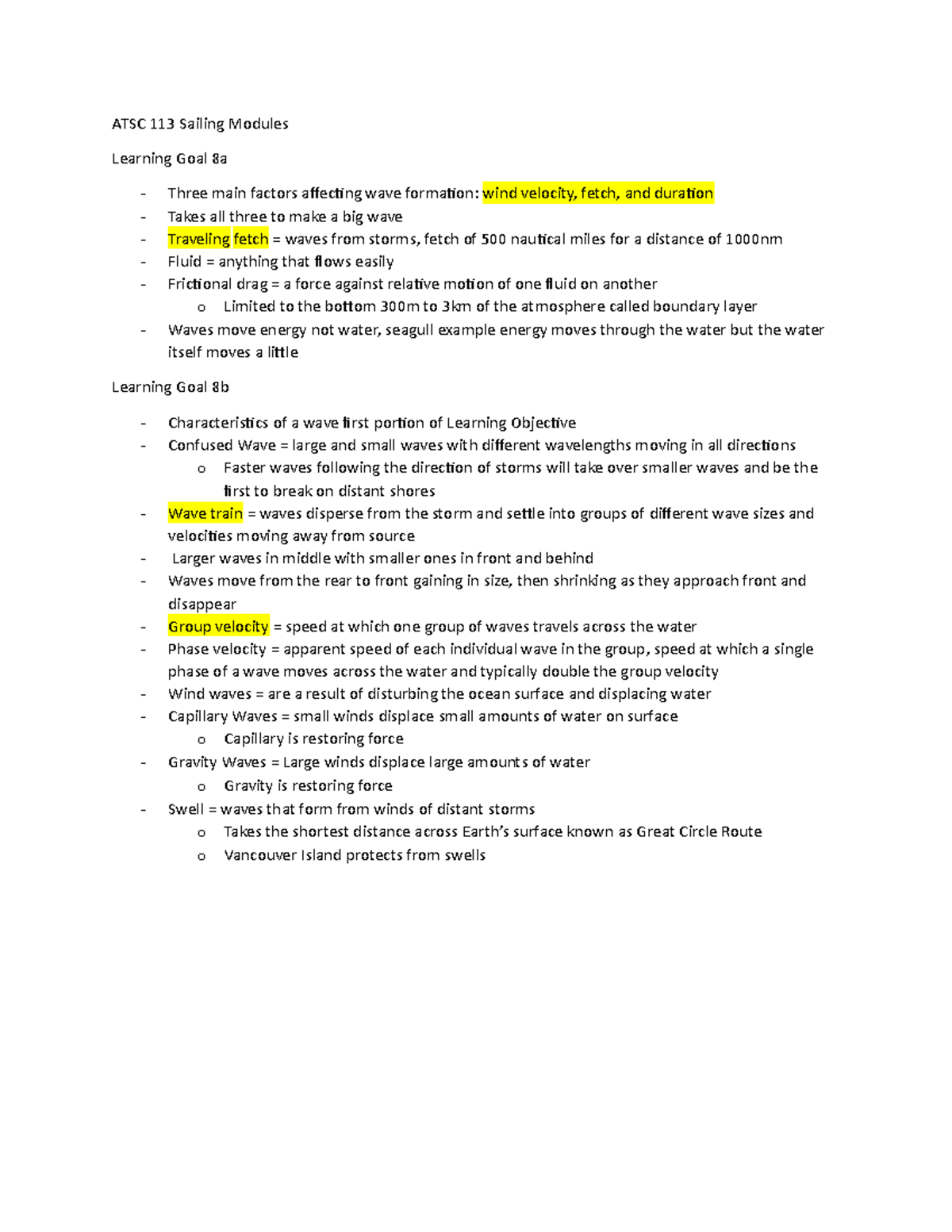 ATSC 113 Module 1 - Notes - ATSC 113 Sailing Modules Learning Goal 8a ...