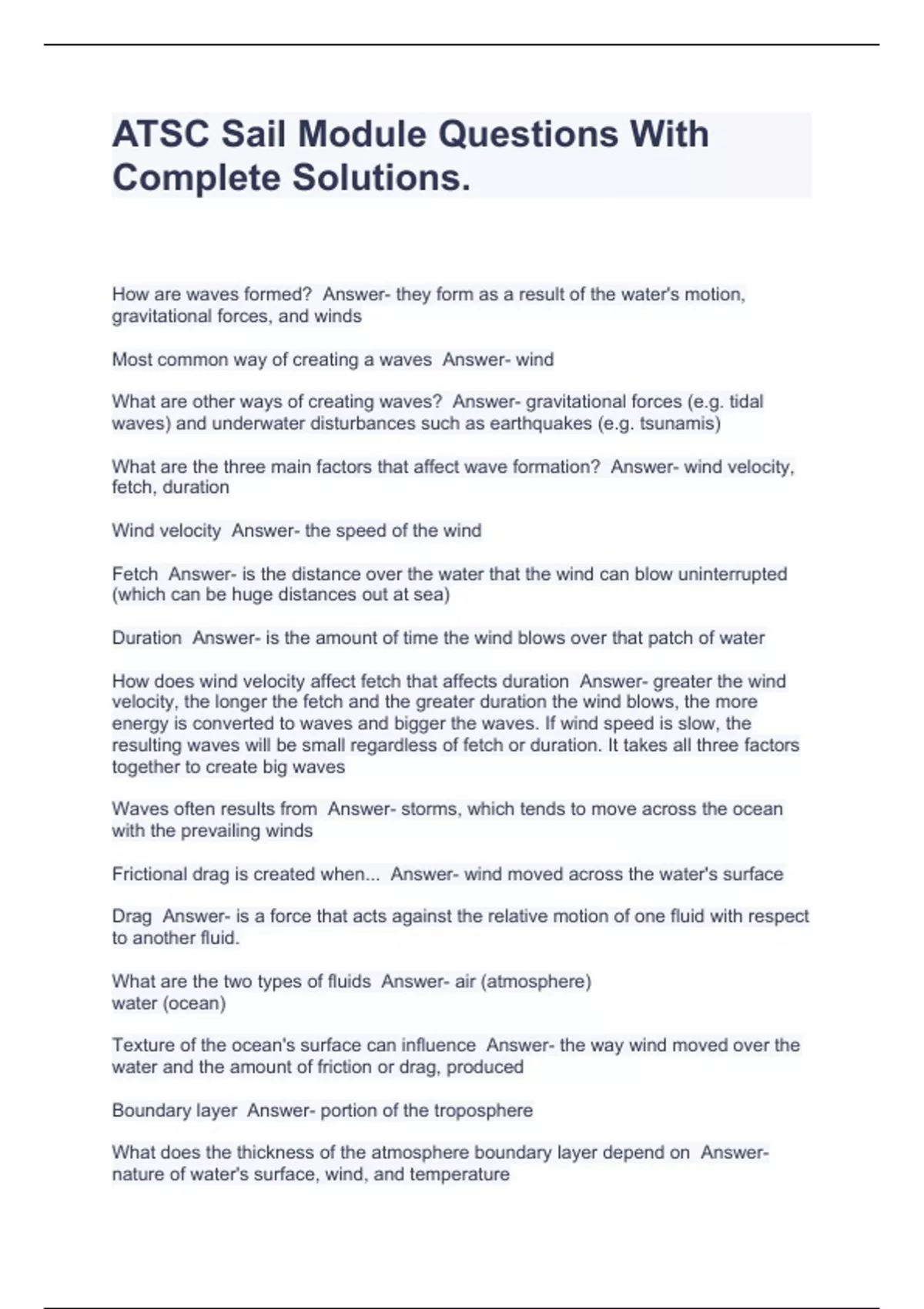 ATSC Sail Module Questions With Complete Solutions. - ATSC Sail - Stuvia UK