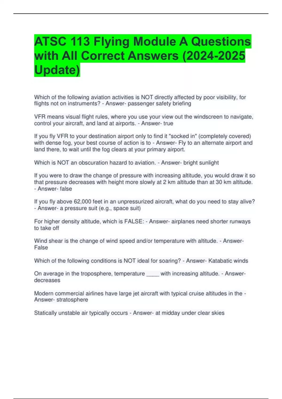 ATSC 113 Flying Module Exam Questions with Correct Answers - ATSC ...