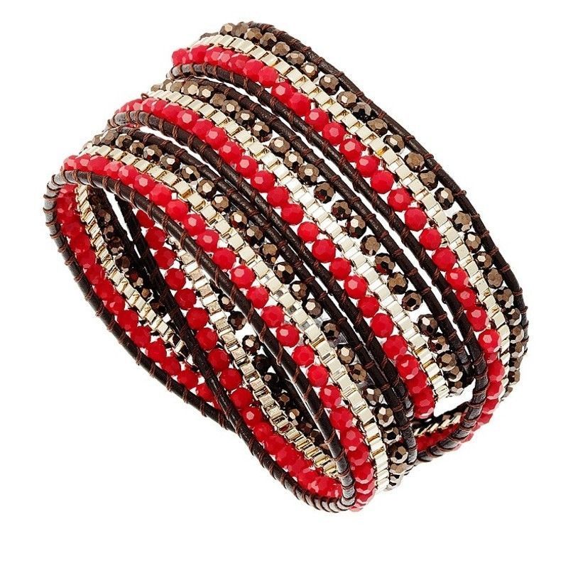 Bracelet en cuir camaïeu rouge