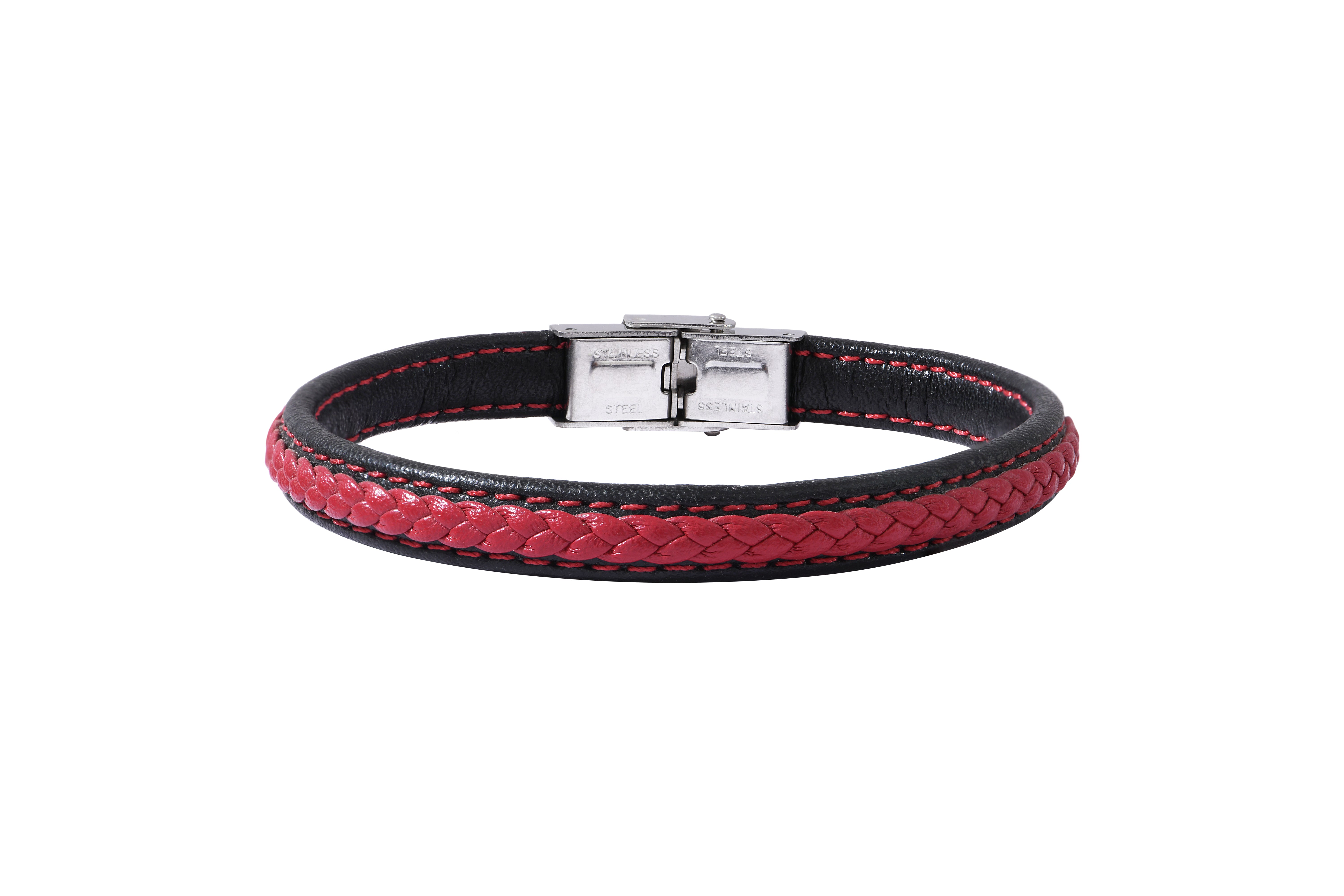 Bracelet Roy en cuir noir et rouge | En stock ! | Lucleon
