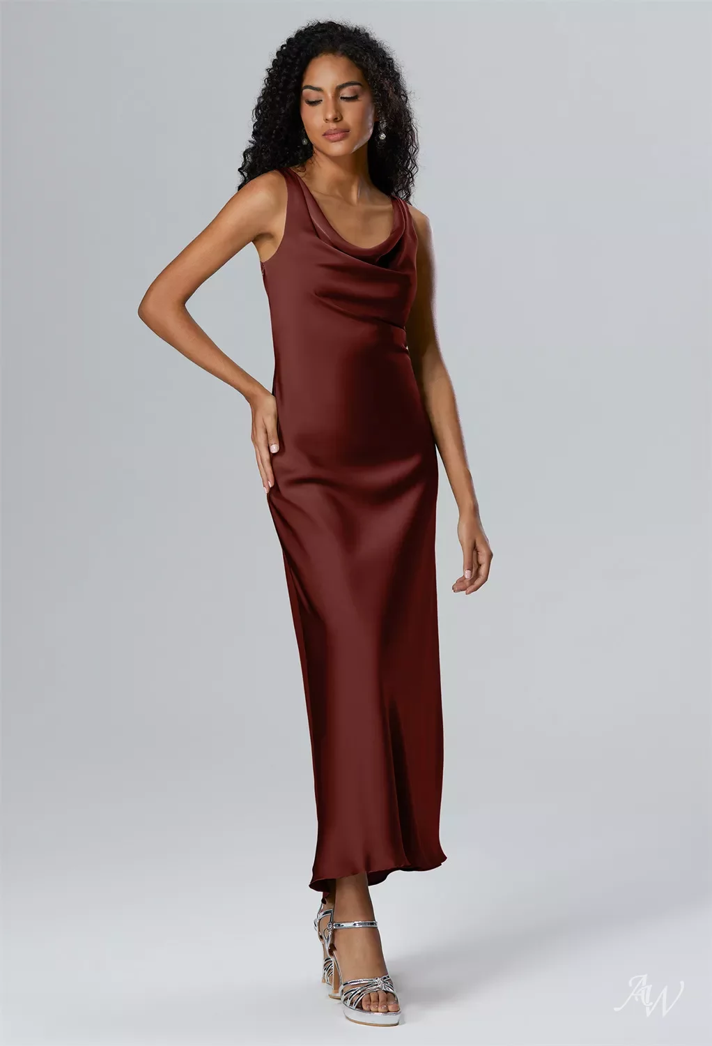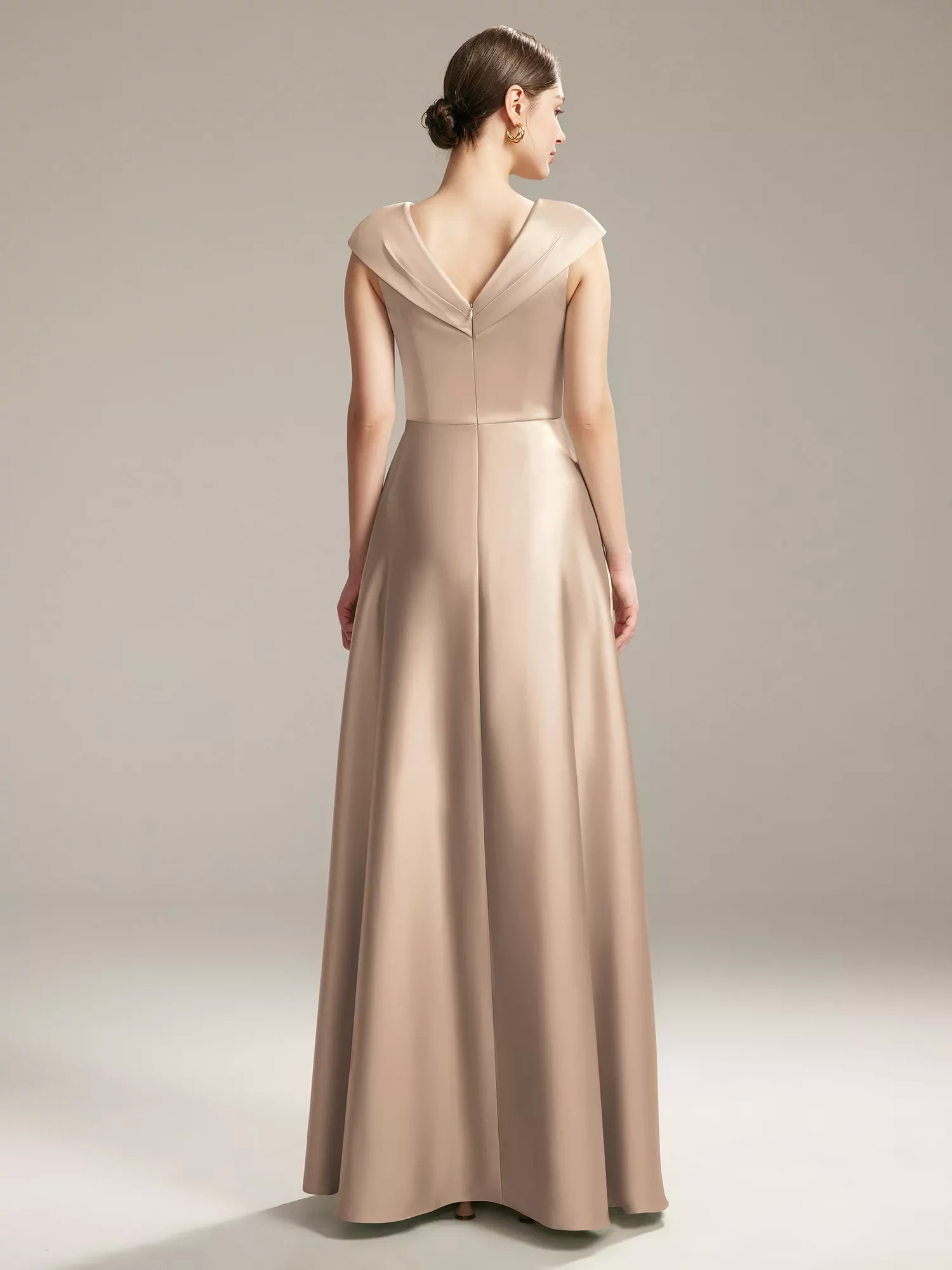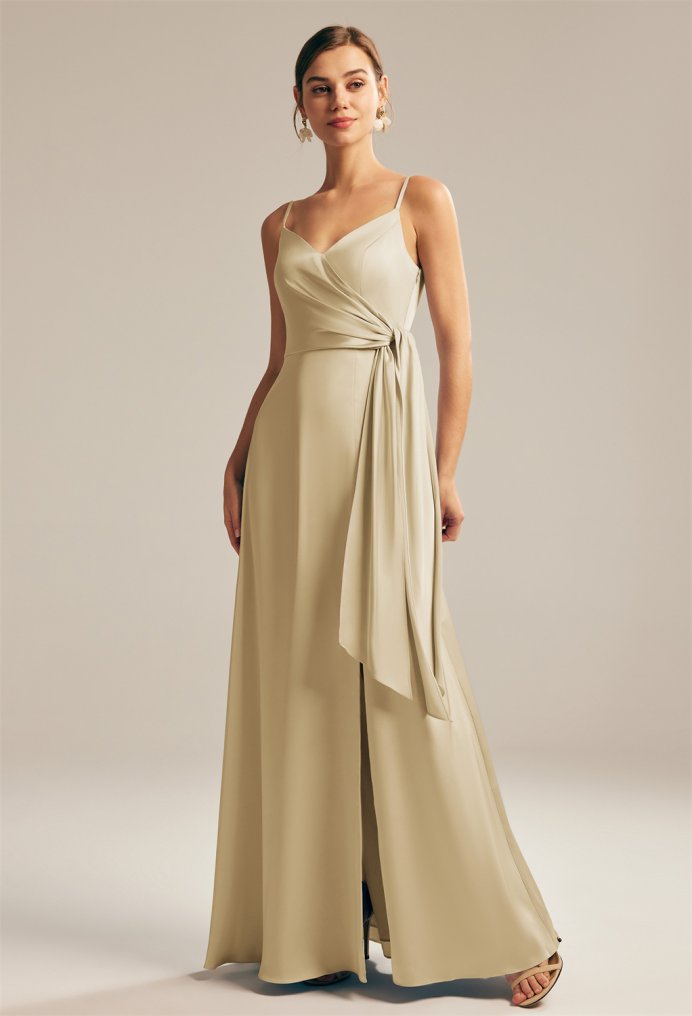 AW Melanie Dress, Champagne Satin Charmeuse Floor Length Bateau ...