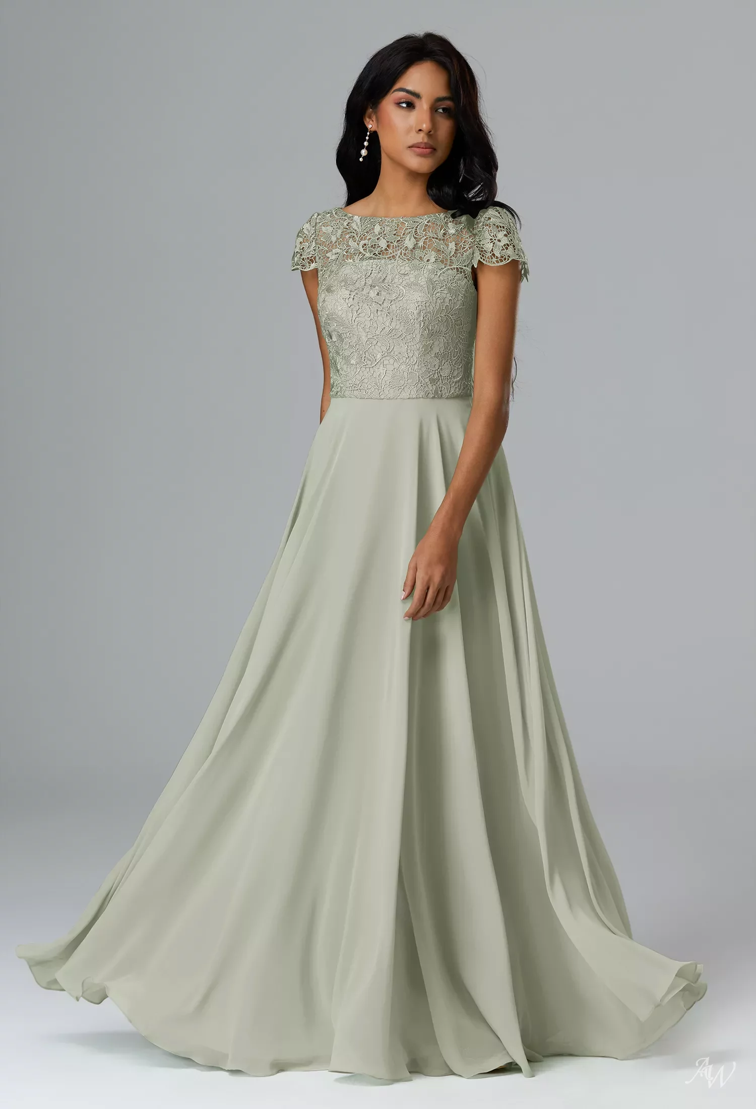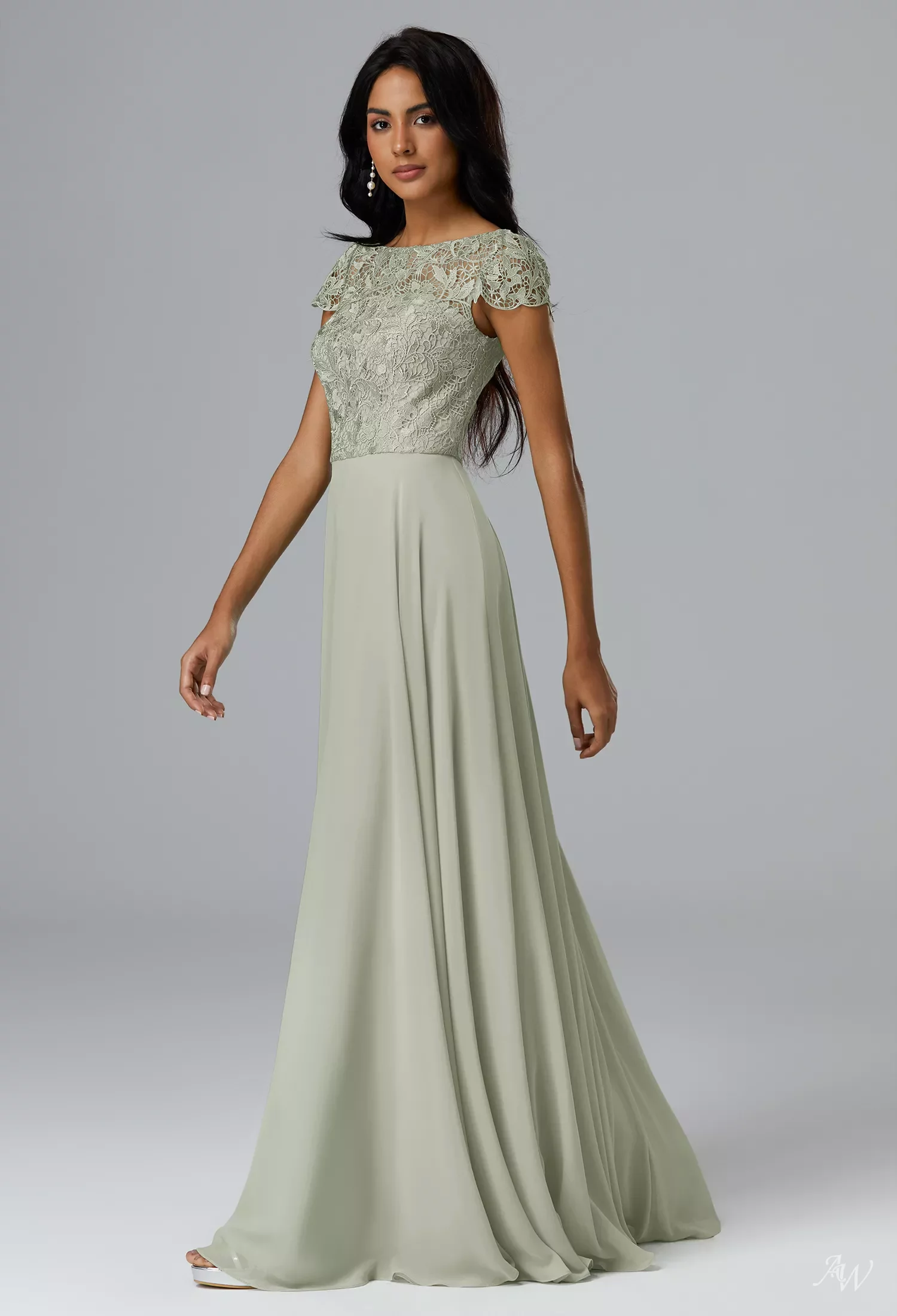 AW Katy Dress, Sage Green Lace Floor Length Bateau Neckline Bridesmaid ...