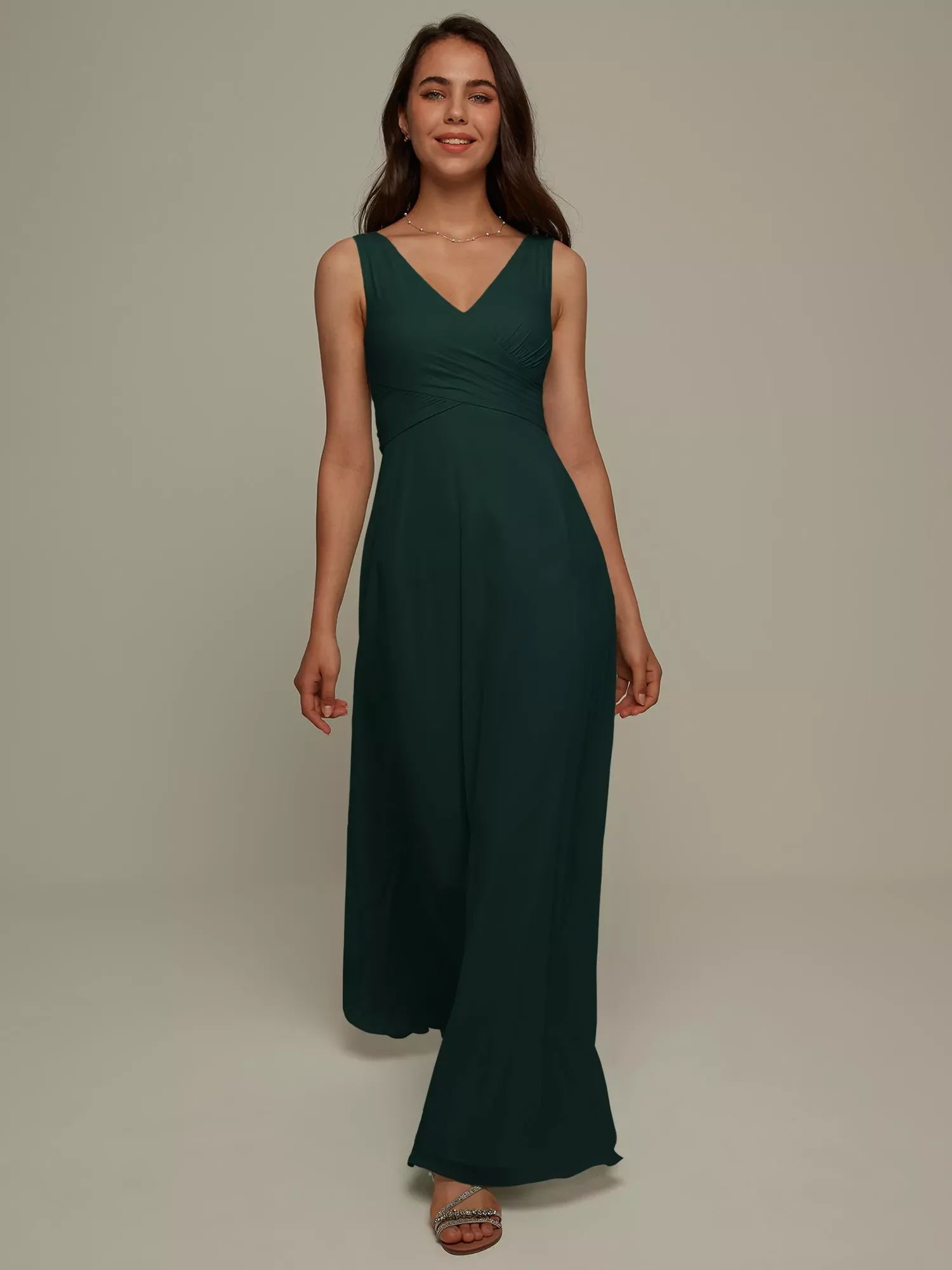 AW Aphrodite Dress, Dark Emerald Chiffon Floor Length V-Neck Bridesmaid ...