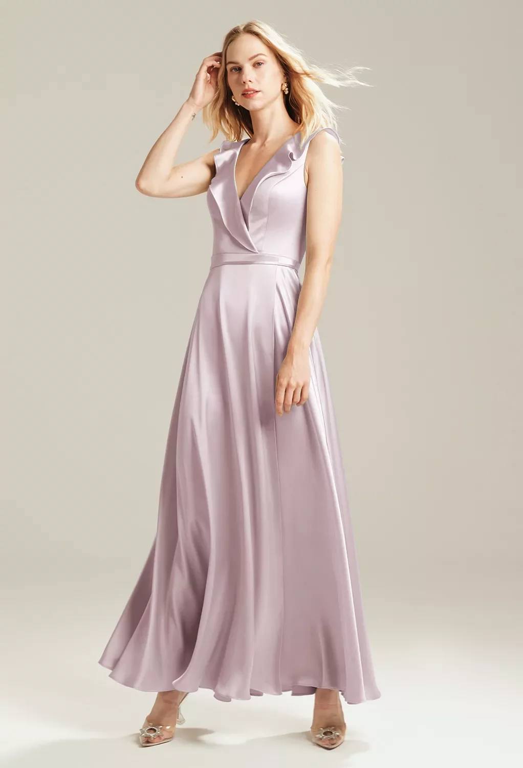 AW Caesar Dress, Mist Satin Charmeuse Floor Length Bateau Neckline ...
