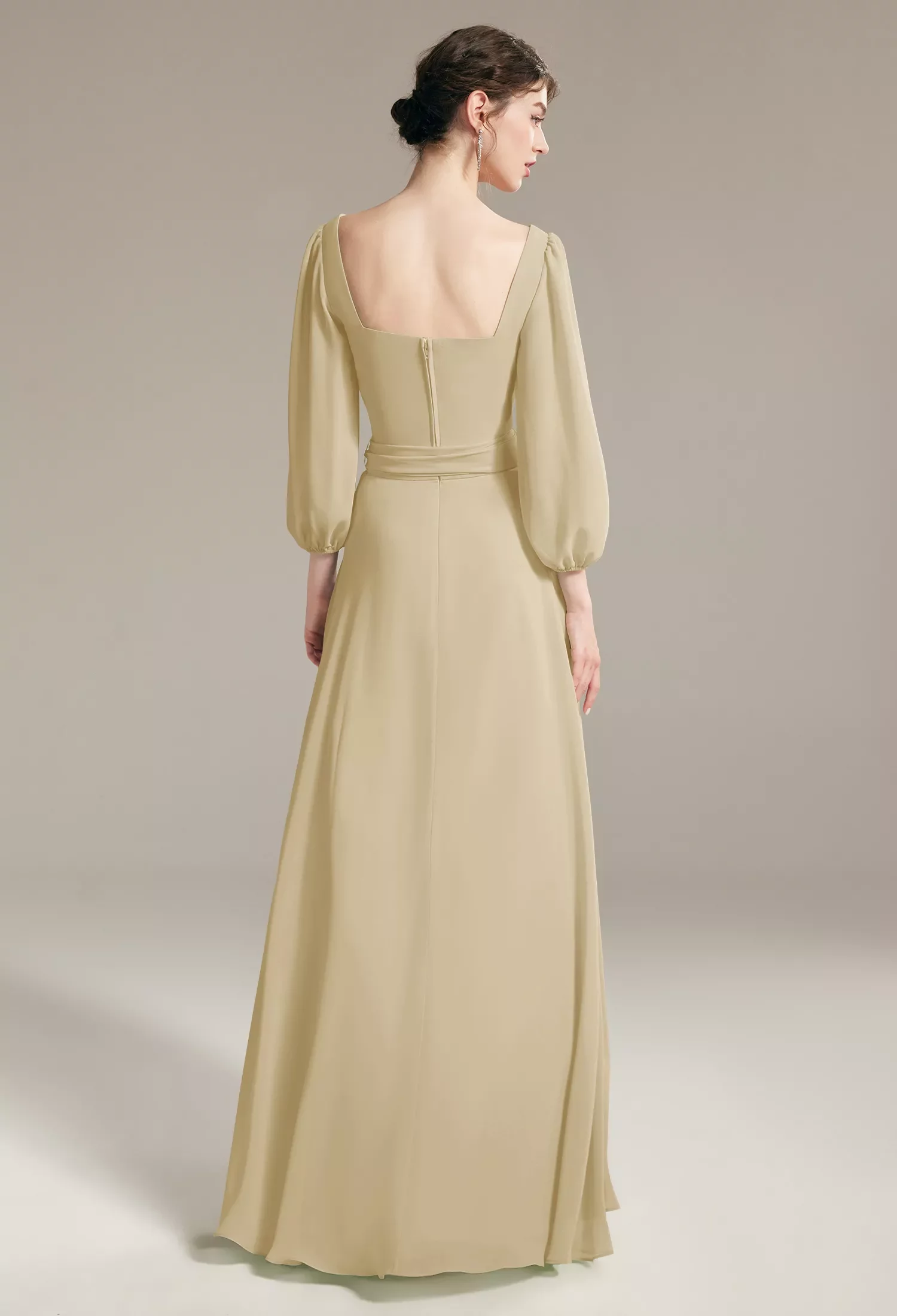 AW Philippa Dress, Desert Rose Chiffon Floor Length Square Neckline ...