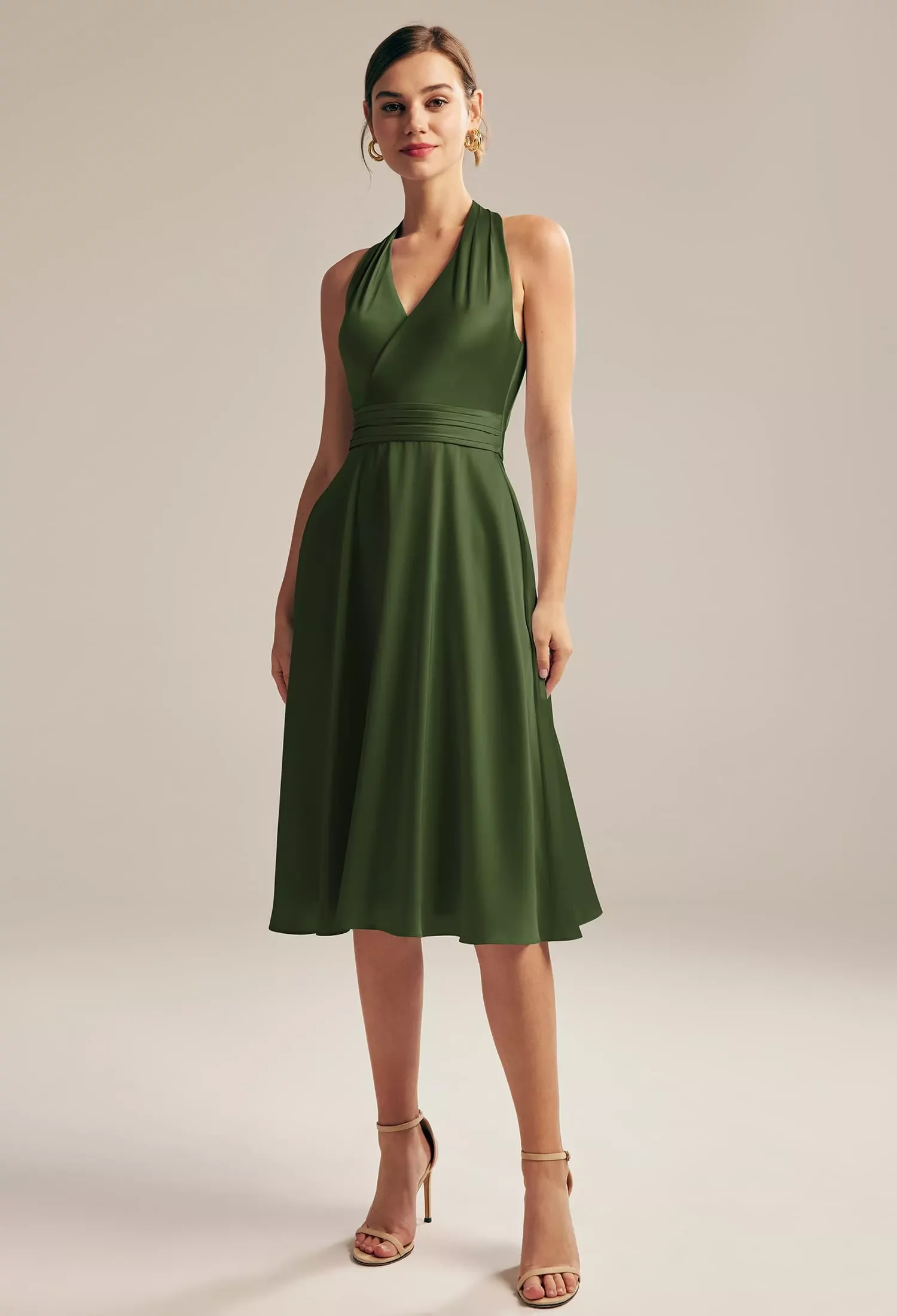 AW Mae Dress, Sage Green Satin Charmeuse Tea Length Sweetheart Neckline ...