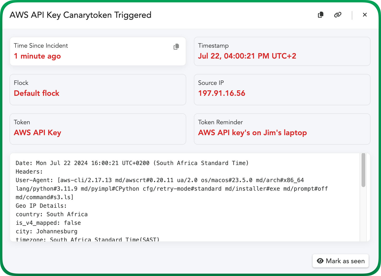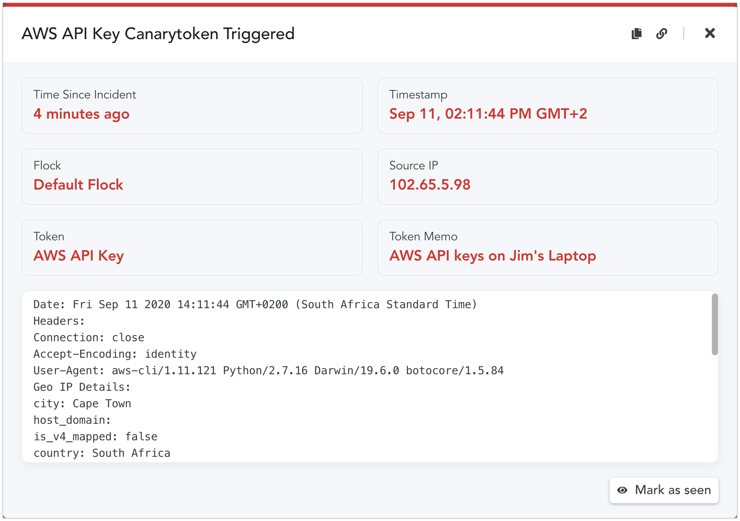 Alert Annotation: AWS API Key Canarytoken No Source IP – Thinkst Canary